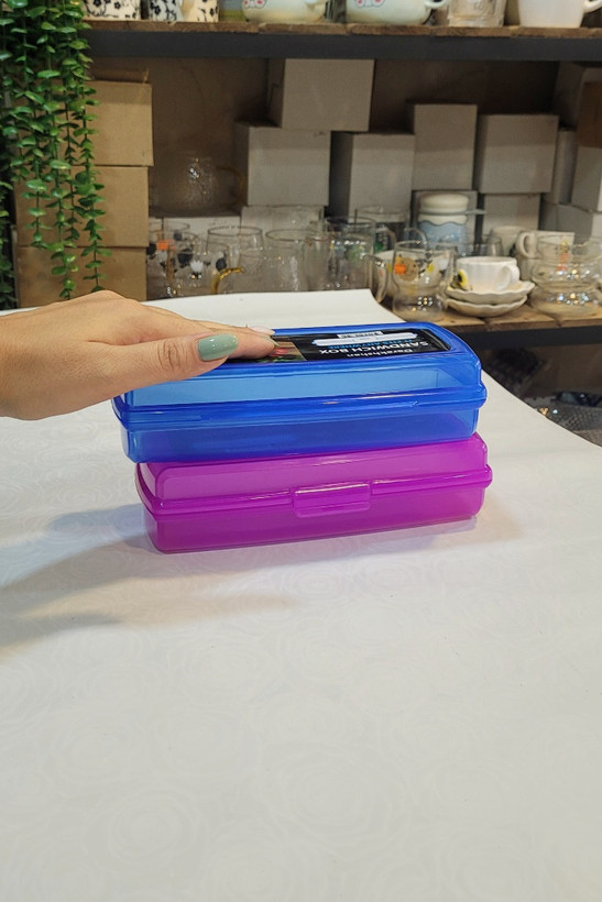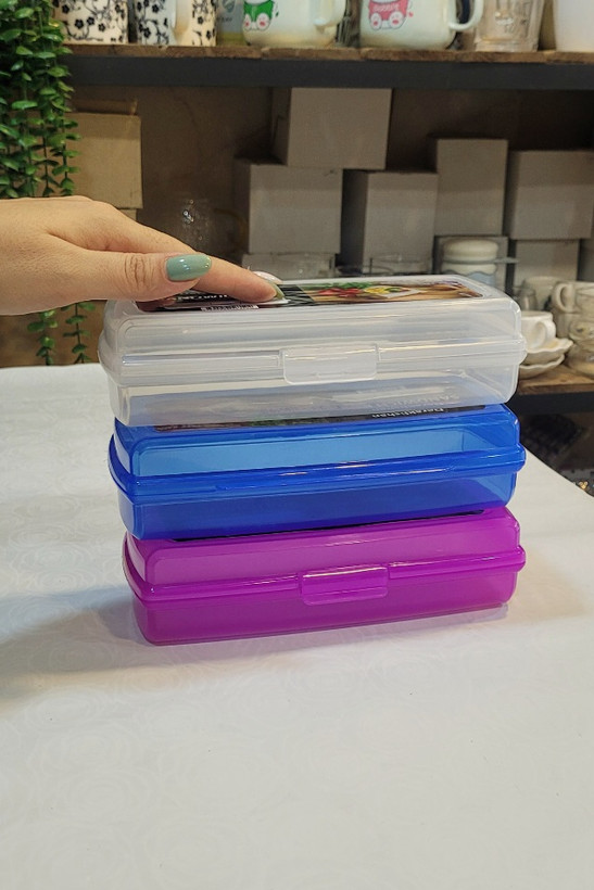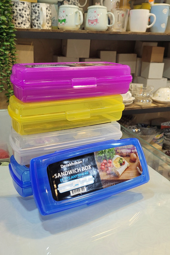 باکس ساندویچ درخشان با جنس PP گرید غذایی، درب قفل‌دار، ابعاد ۲۰×۹×۶ و رنگ‌بندی متنوع؛ مناسب مدرسه، کار و سفر. سبک، مقاوم و قابل استفاده در ماکروفر.