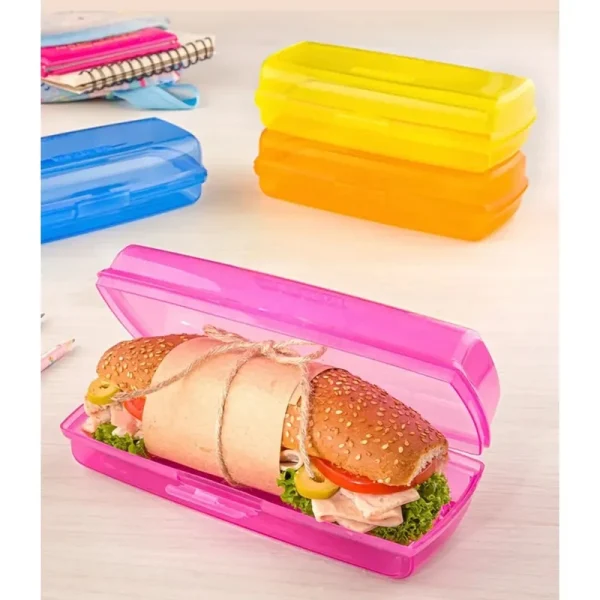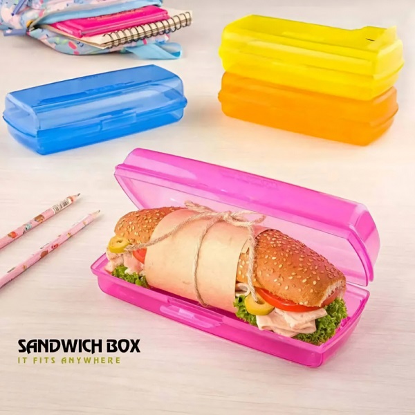 ابعاد استاندارد نگهدارنده ساندویچ فضای کافی برای انواع ساندویچ، میوه، مغزیجات و میان‌وعده‌ها فراهم می‌کند و به دلیل مقاومت حرارتی، قابل استفاده در ماکروفر نیز هست.
