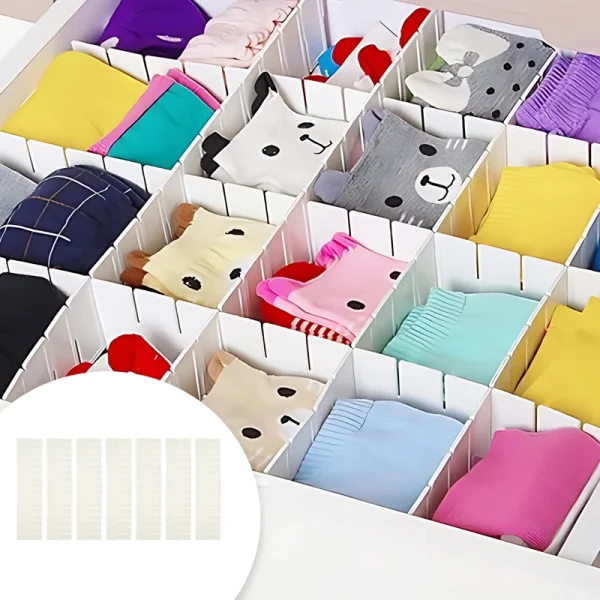 خرید تقسیمکننده کشو ورقهای قابل تنظیم با 6 خشاب پلاستیکی، مناسب نظمدهی جوراب، لباس زیر و وسایل شخصی. کیفیت عالی و نصب آسان از برایاشاپ.