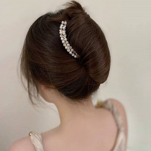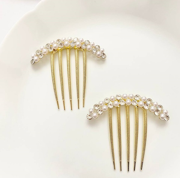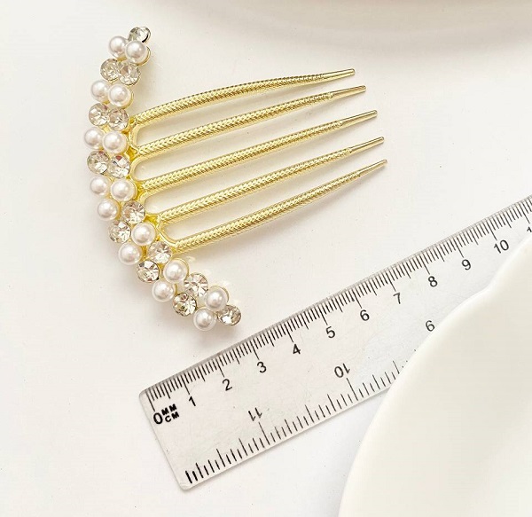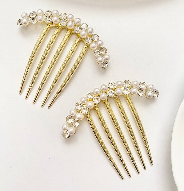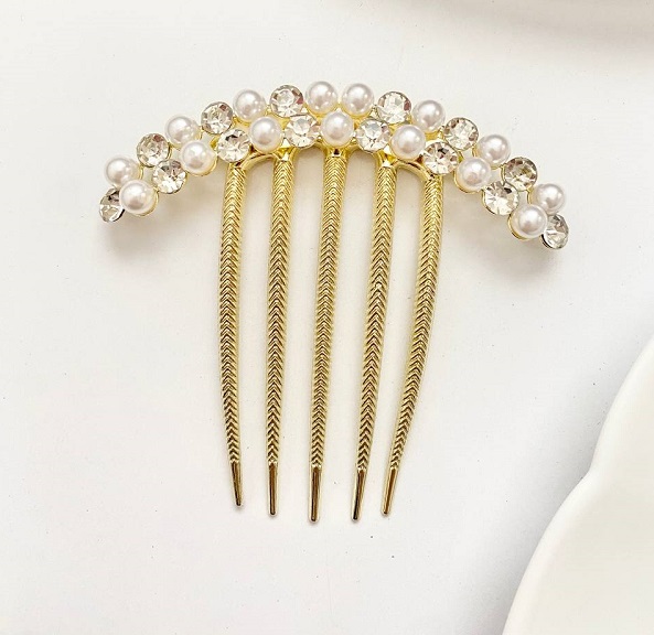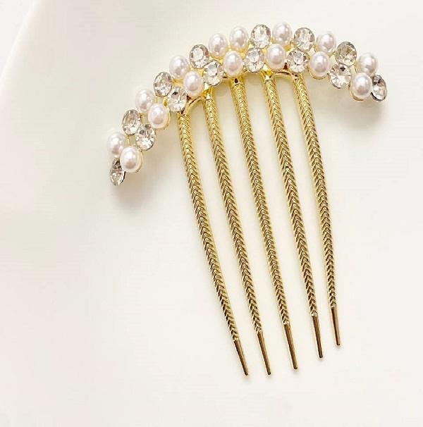 شانه شنیون مجلسی طلایی با نگین و مروارید – بهترین انتخاب برای زیبایی موهای شما