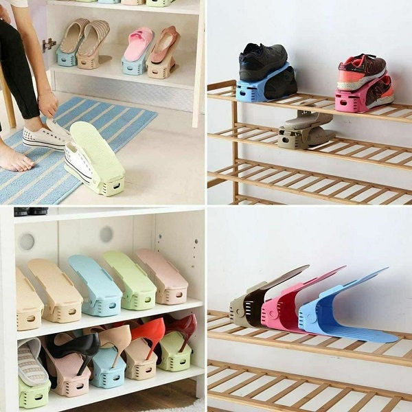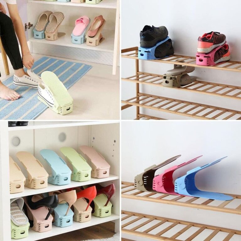 نظمدهنده کفش تاشو پلاستیکی برایاشاپ، محصولی مقاوم و قابل تنظیم ارتفاع برای مرتبسازی کفشها. ضدلغزش، بادوام و مناسب صرفهجویی در فضای جاکفشی.