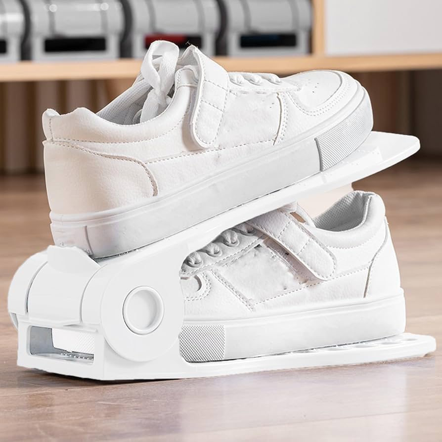 نظم‌دهنده کفش تاشو پلاستیکی برایاشاپ، محصولی مقاوم و قابل تنظیم ارتفاع برای مرتب‌سازی کفش‌ها. ضدلغزش، بادوام و مناسب صرفه‌جویی در فضای جاکفشی.