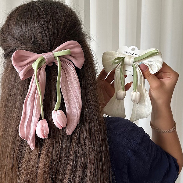 گیره مو انبری گل لاله مدل پاپیونی سایز بزرگ – انتخابی شیک و متفاوت برای دختران جوان
